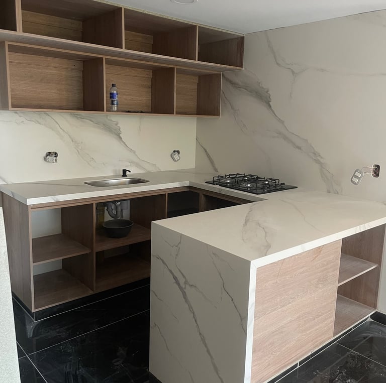 EN EDIFIKA NOS DEDICAMOS A LA FABRICACIÓN DE MESONES, CHIMENEAS, MESAS DE BAÑO DESDE LA CARPINTERÍA HASTA SU RECUBRIMIENTO